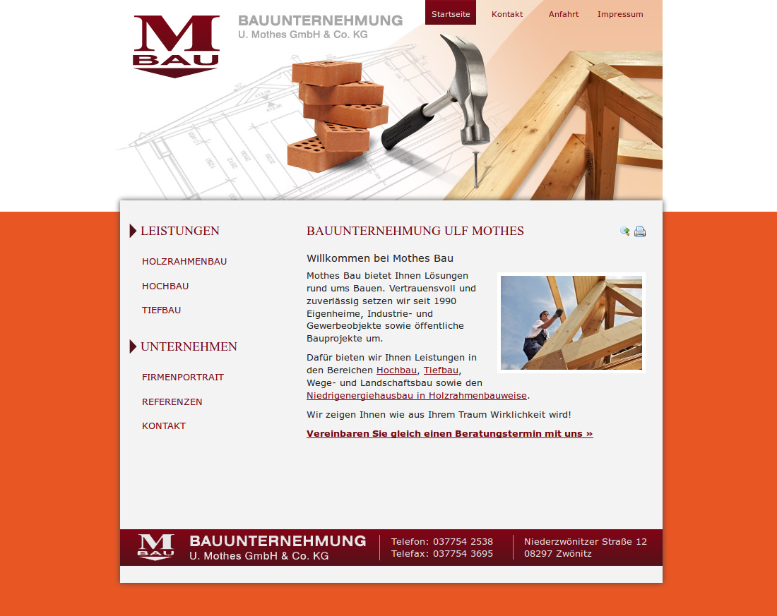 Webdesign für Bauunternehmung U. Mothes bei Stollberg